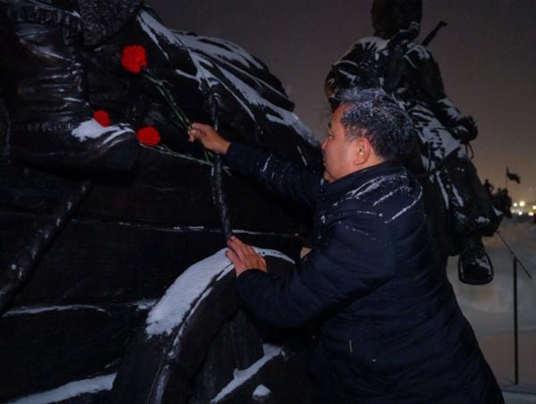 Хөшөөнд цэцэг өргөхөд Лувсан баатрын ач хүү Х.Дэлгэр оролцов. Тэрбээр монголчуудын бэлгийг Зөвлөлтийн ард түмэнд хүргэж, бага залуугийн дүр төрхөөрөө Москва хотноо мөнхрөн үлдсэн өвөөгөөрөө бахархаж байна гээд, өөрсдийн идэх хоол, өмсөх зүүхээс хагаслан байж дулаан хувцас, хоол хүнс цуглуулан цуваа цуваагаар бэлэглэж байсан Монголын ард түмний тус дэмийг Оросын ард түмэн өнөөдрийг хүртэл талархан хүндэтгэсээр байгаад баяртай байна гэлээ.